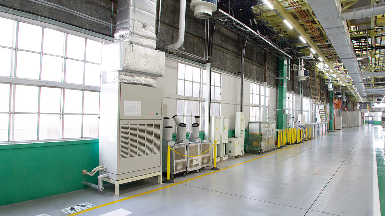 第10機械工場生産ラインのダクト空調として採用された、設備用パッケージエアコン「ファシレアDD」