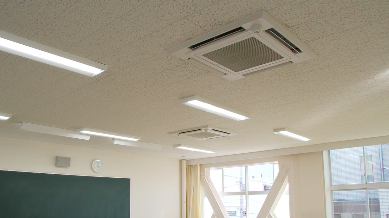 以前も三菱電機製の空調機を使っていましたが、老朽化が進んでいたため更新を決意。補助金の存在を知ったのは、三菱電機システムサービス株式会社と更新の計画を進めていたときです。補助金の公募締切まで時間的猶予はありませんでしたが、三菱電機フィナンシャルソリューションズ(旧:三菱電機クレジット)株式会社との共同申請により、期間内に無事完了。みごと交付を受けることができました。生徒たちに快適な学習環境を提供することができてよかったです。