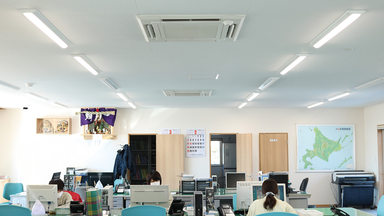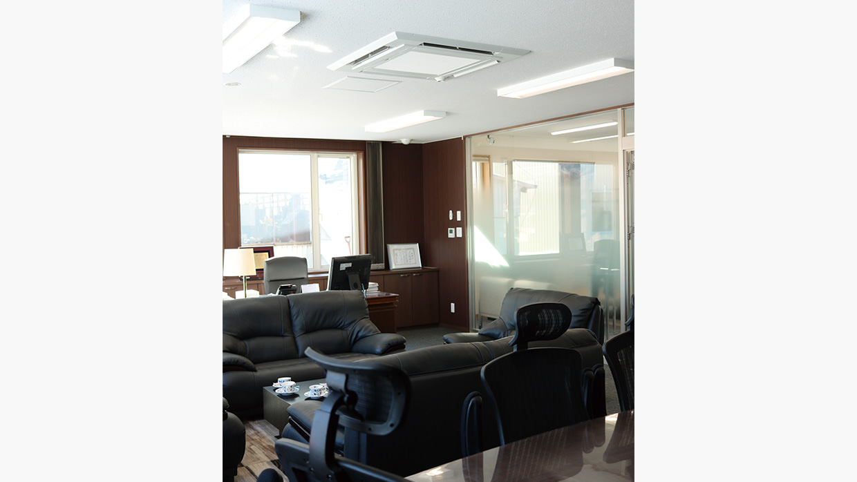 以前は石油式暖房を使用していましたが、自宅ではルームエアコンを冬場に使用していたこともあり、事務所への採用に不安はありませんでした。事務所に長時間いる女性からは、足もとまでしっかり暖かいと評判です。また、別海町の冬は厳しい寒さですが、夏には30℃を超えることもあります。エアコンなら冷房も暖房も使えるので効率的です。ズバ暖スリムにしてよかったです。