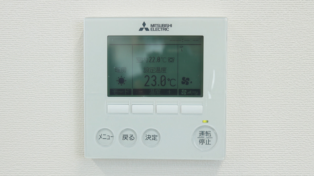 設定温度は23℃。エアコン1台で足もとまで暖かい。