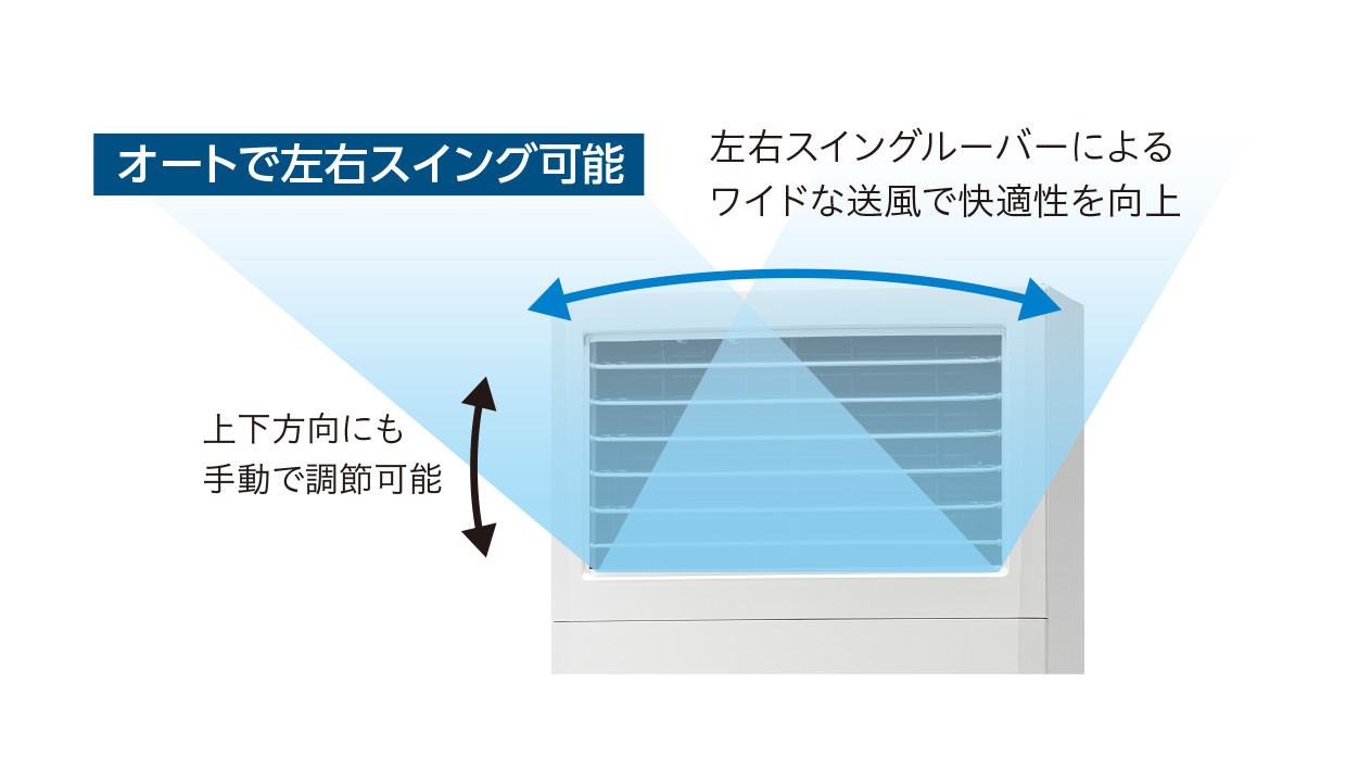 左右スイングでワイド送風(2~6馬力)