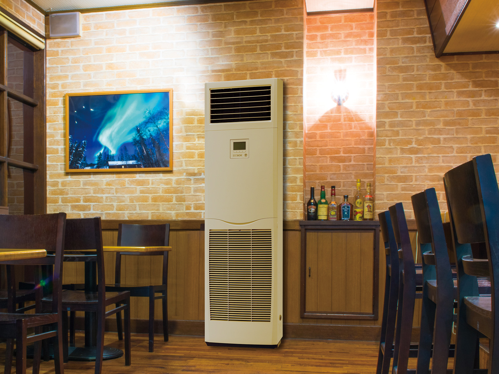 床に設置するタイプなので、工事が簡単。暖房時は足元から快適にします。コーナー等のスペースを無駄なく使用したい場所におすすめ。