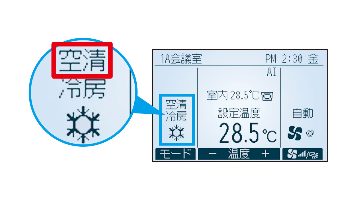 「ヘルスエアー®機能」搭載クリーンユニットが作動していることをリモコン画面に表示し、空清運転中であることをお知らせします※3。
