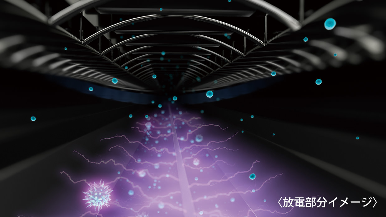 ユニットを通過する空気中のウイルス※1、菌※2などを高電圧で抑制。さらに、微細なホコリも帯電させて、集塵部の静電気でキャッチします。