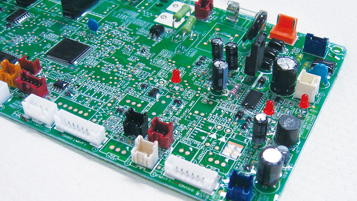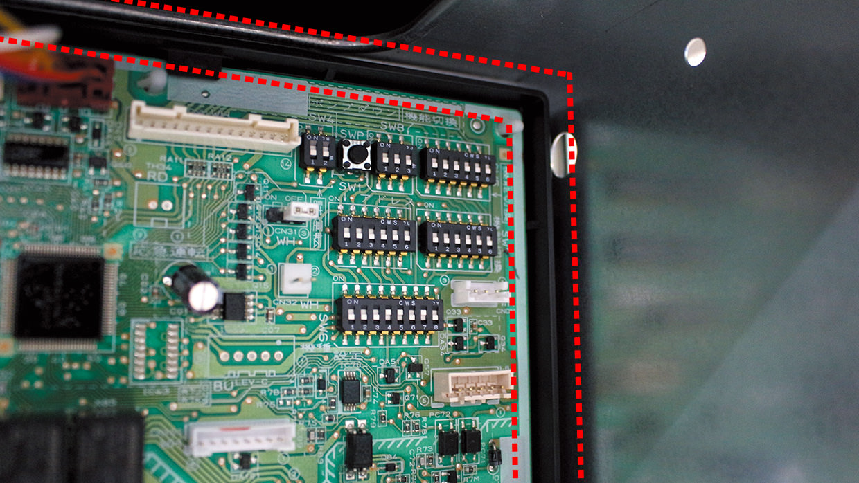 湿気や粉塵によるショートを防ぐため、室外ユニットの基板にポリオレフィン系樹脂コーティングを施しています。機器トラブルを未然に防ぐために、細部までこだわっています。