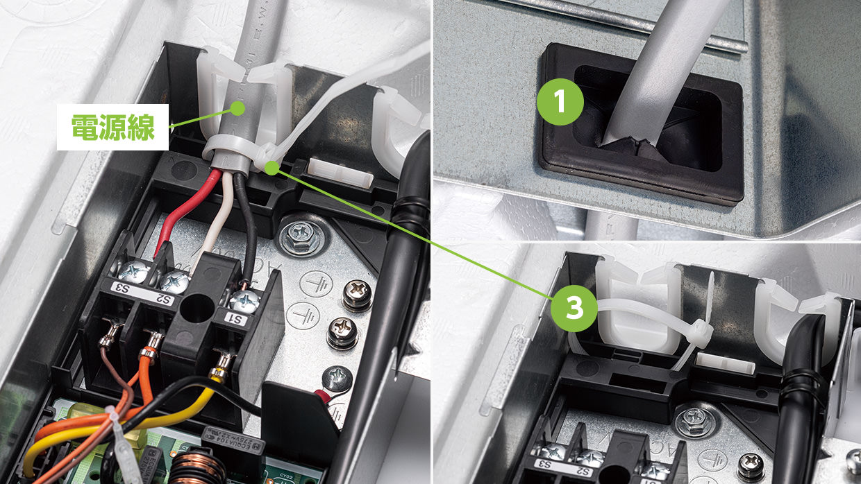 配線を固定するバンドを標準で搭載。配線の固定をしっかり行い、安心してご使用いただける構造にこだわっています。