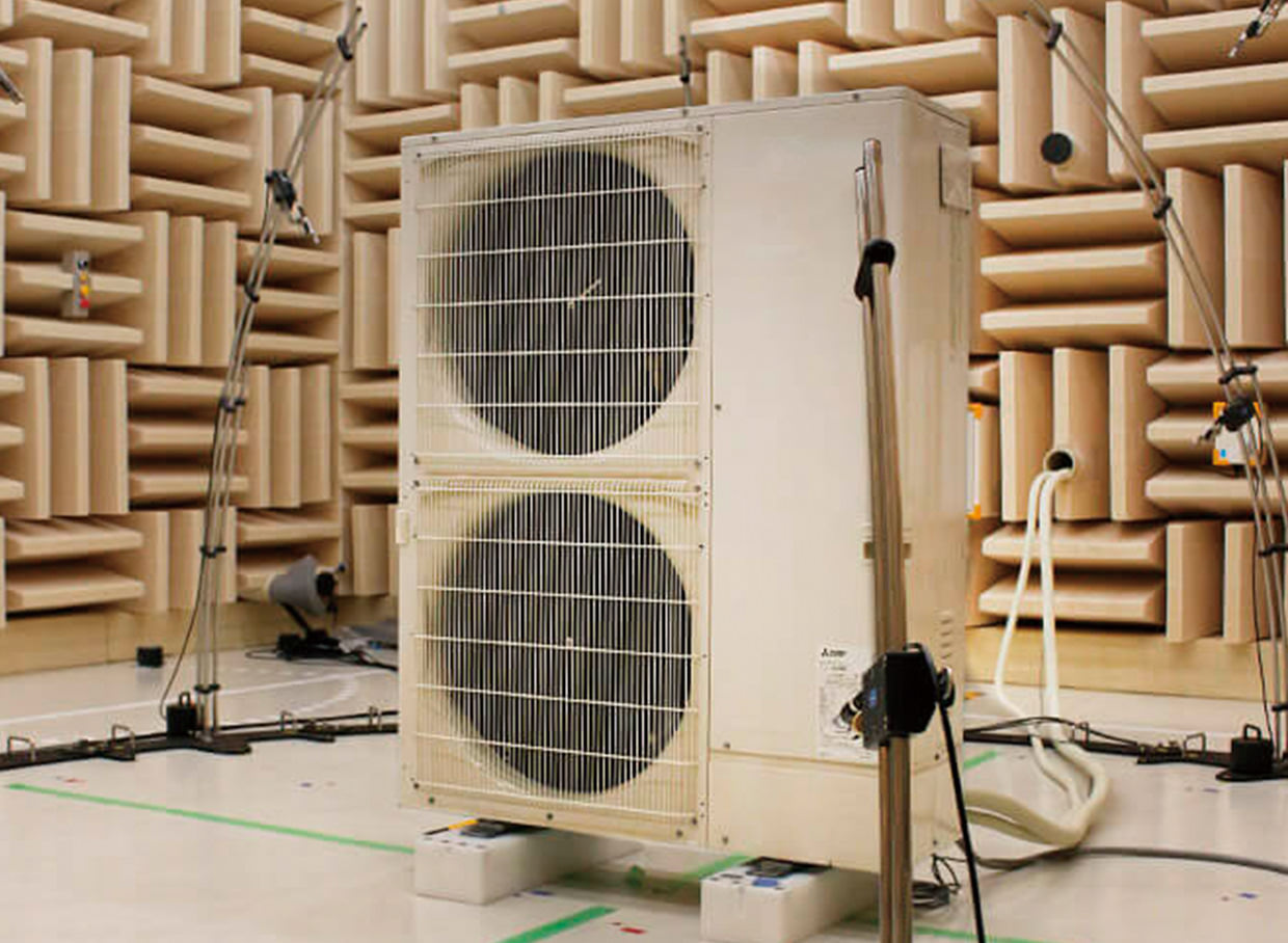 無響室という極めて雑音が少ない空間で製品の運転音を測定。エアコンの運転音をしっかり検証し、日々の快適性を追求しています。