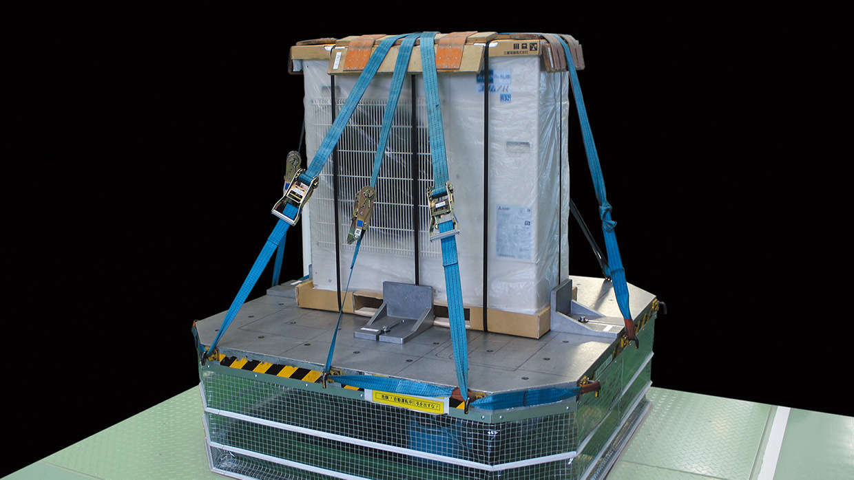 製品を輸送する際の製品不具合を防止するために、輸送中の環境を再現した振動試験や落下試験によって、耐久性を検証しています。