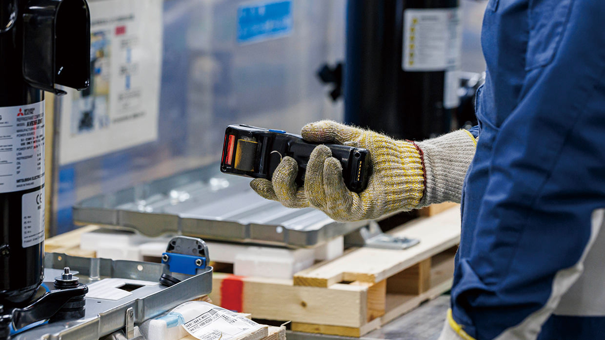 製品と主要部品にQRコードを貼り付けて組立ての際に1台1台照合し、部品の組立て間違いを防止。