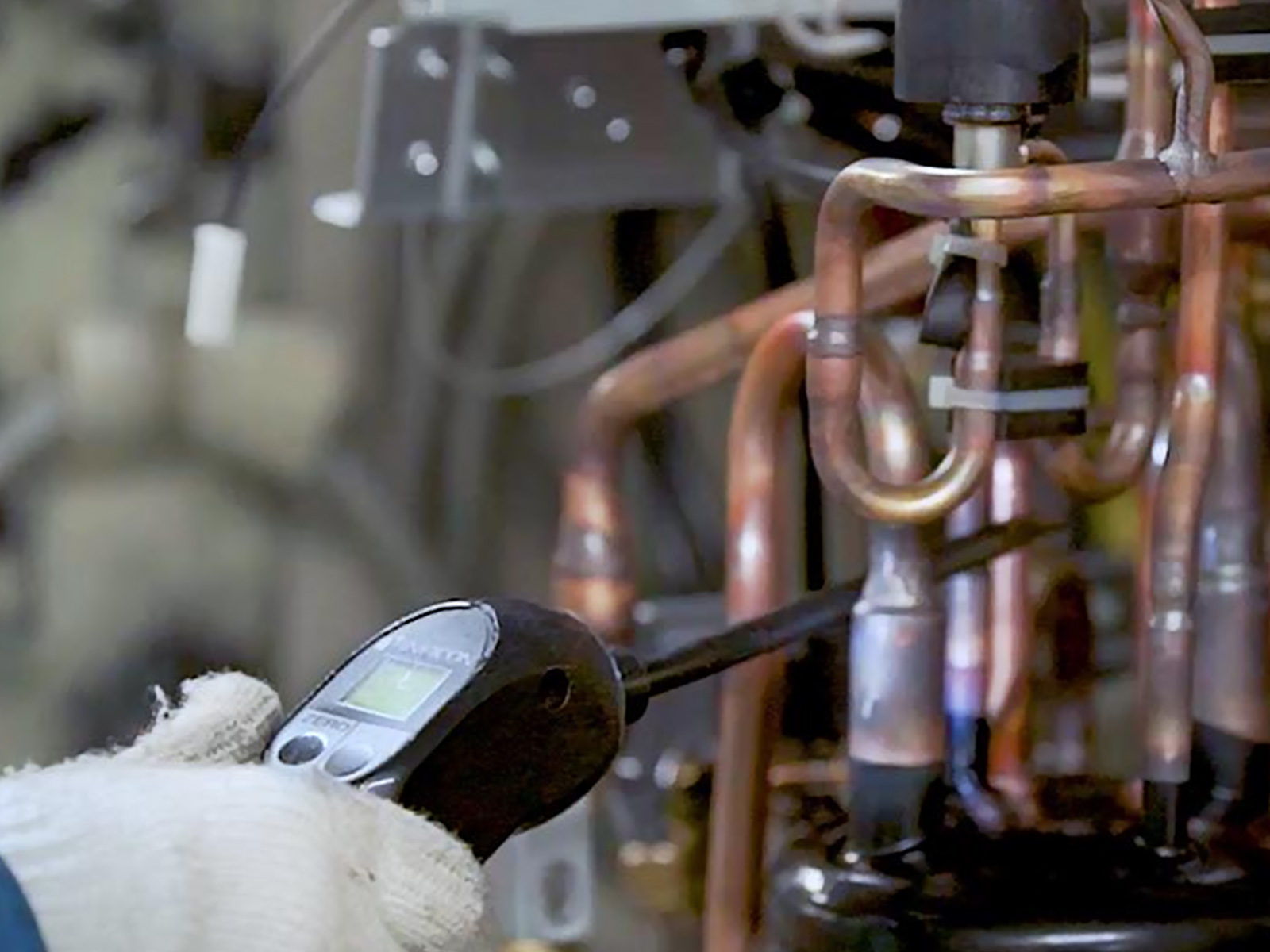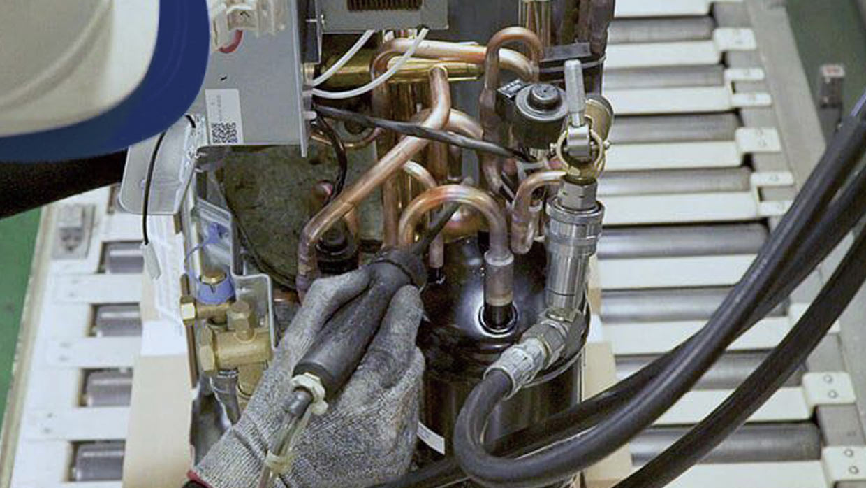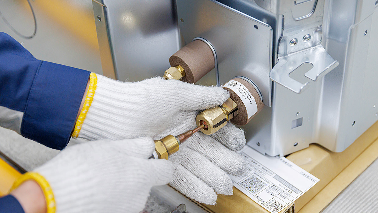 高度な技術が必要な冷媒配管の無酸化ろう付け作業は、ガス溶接の国家資格の取得に加えて独自の資格指名制度を採用。厳しい基準をクリアした作業者がろう付け作業を実施しています。