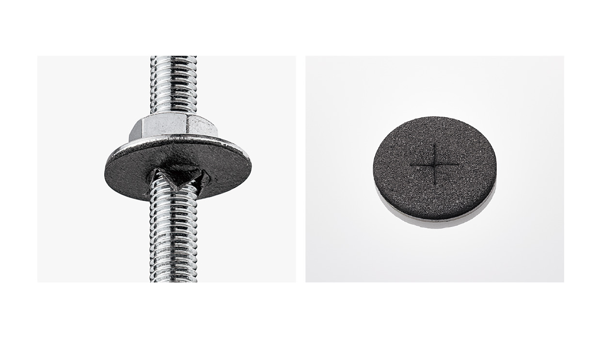 1 クッション付きの吊りボルトワッシャーを標準搭載