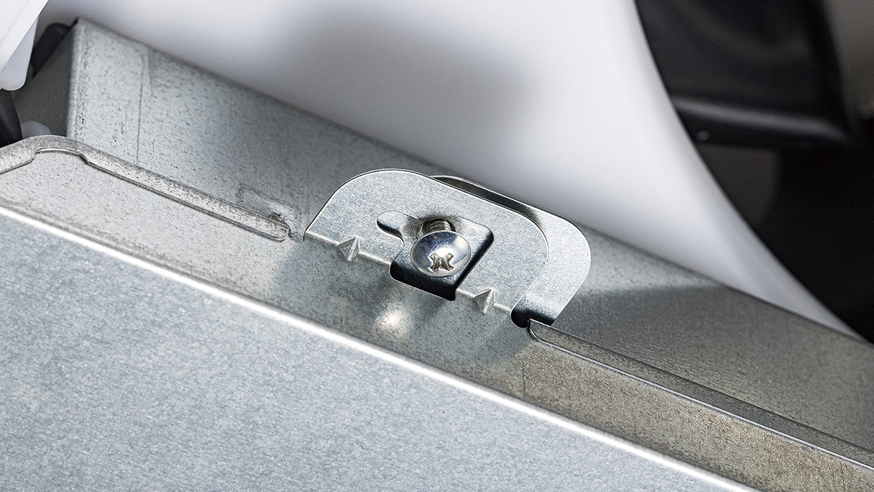 ユニット本体への固定用ネジが化粧パネルに組み込まれた構造を採用。高所での施工中にネジを取り出す必要がなく、ネジ落下を防止。