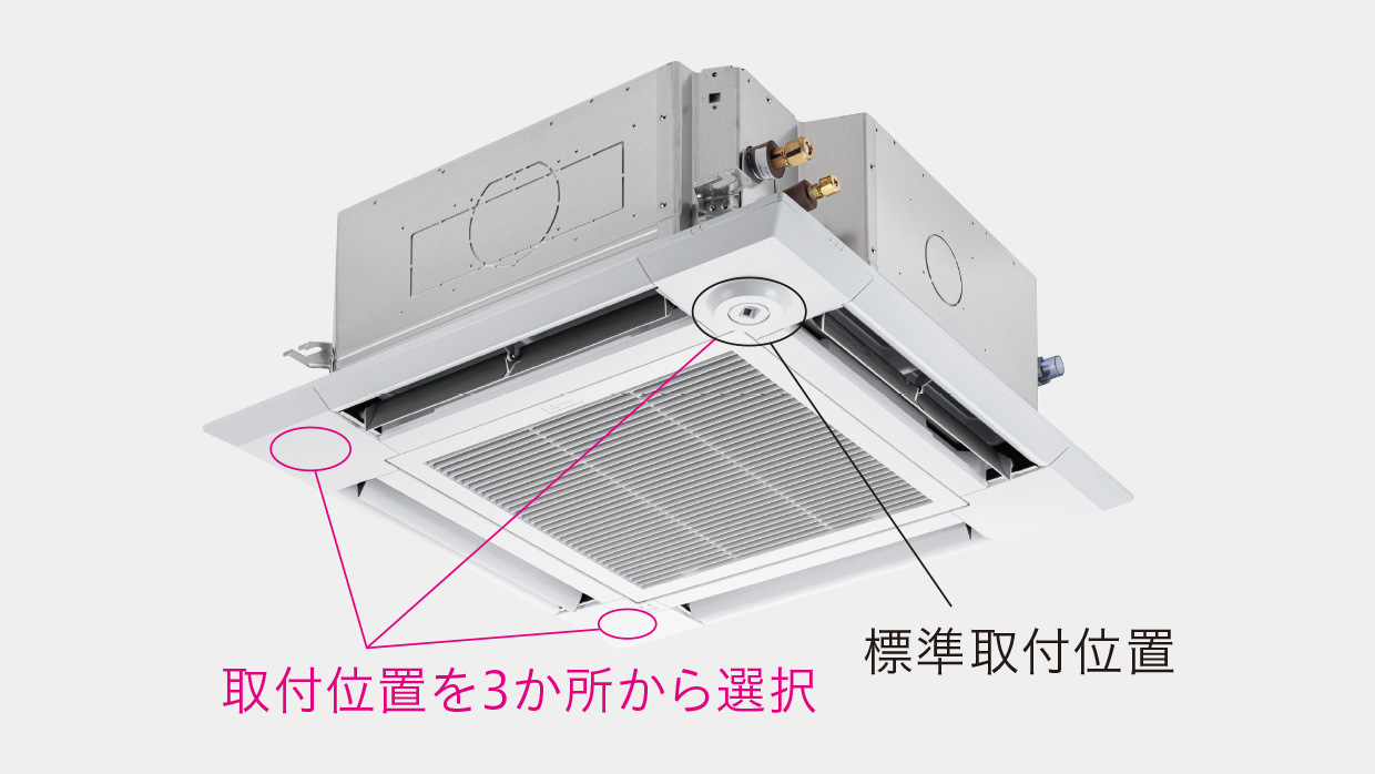ムーブアイ(センサー)取付位置は3か所から選択できるため、ユニット据付後の位置調整も簡単です。ユニット向きを統一する際の手間を削減します。