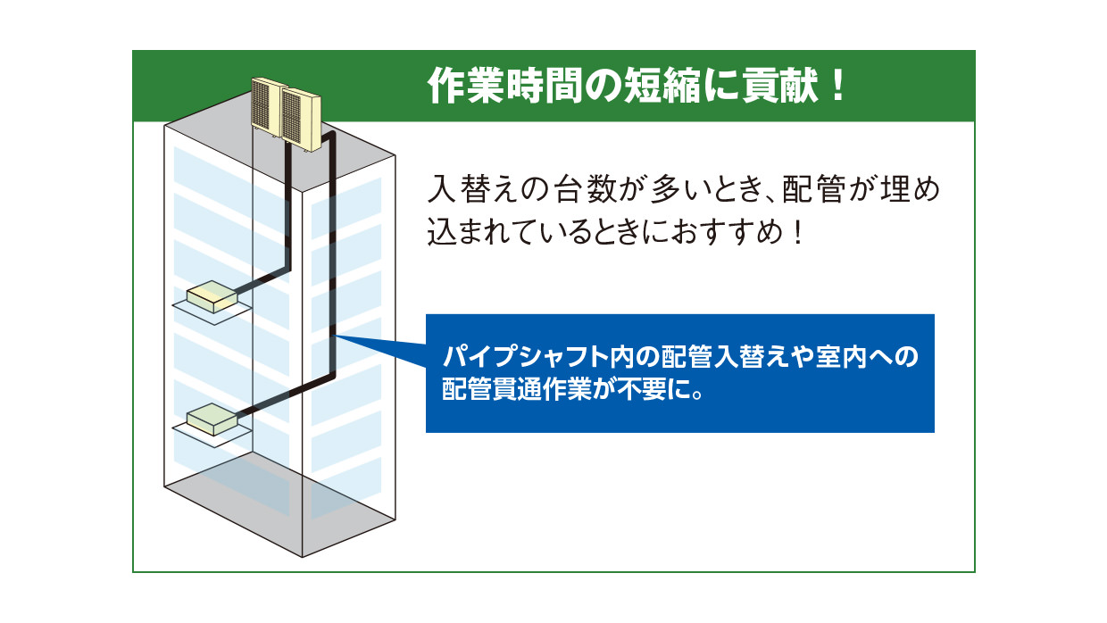 リニューアル時も、圧縮機故障時も。洗浄レスで配管を再利用