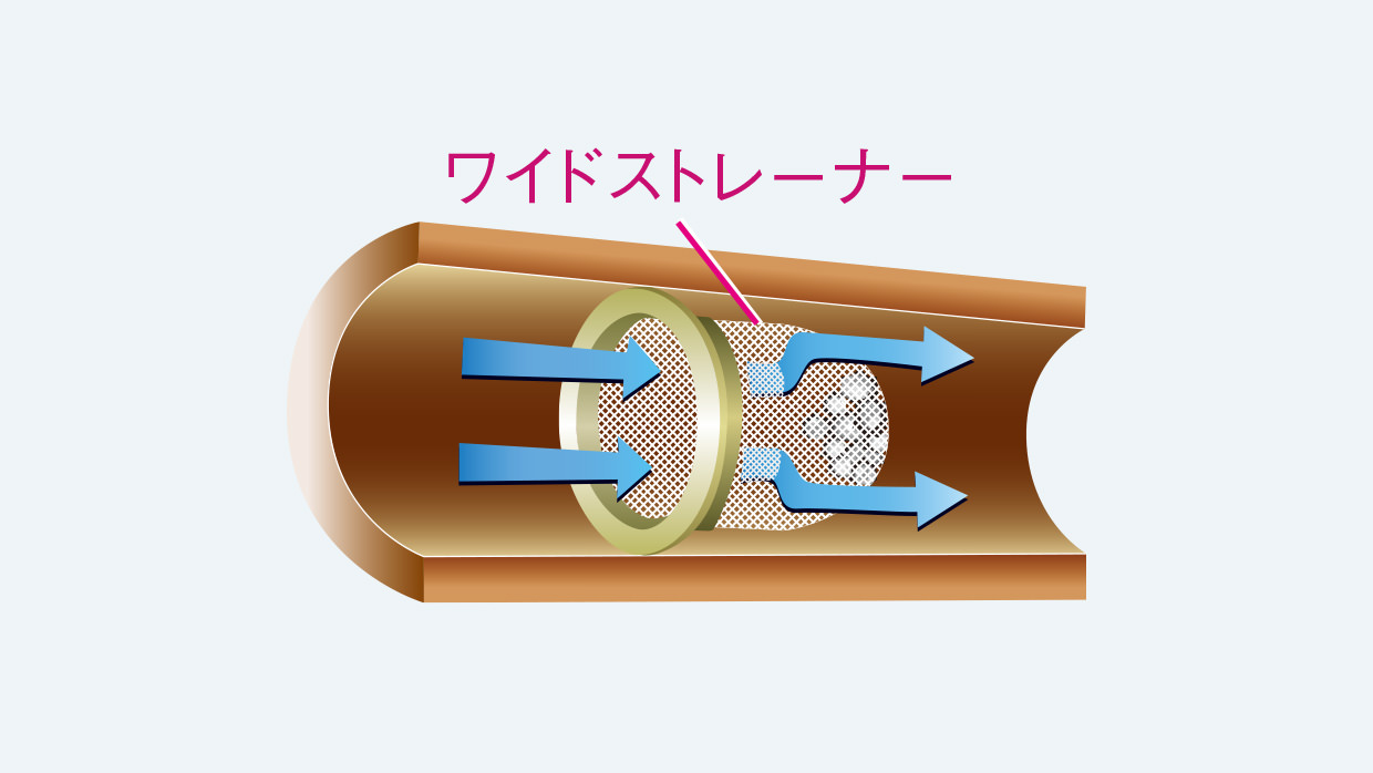 技術 2鉄粉などを捕捉するワイドストレーナー。