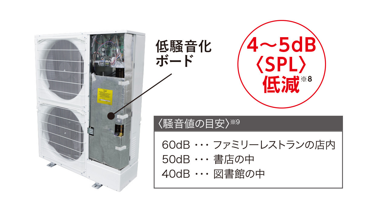 空調能力の低下を抑えながら※7、騒音値を低減します。