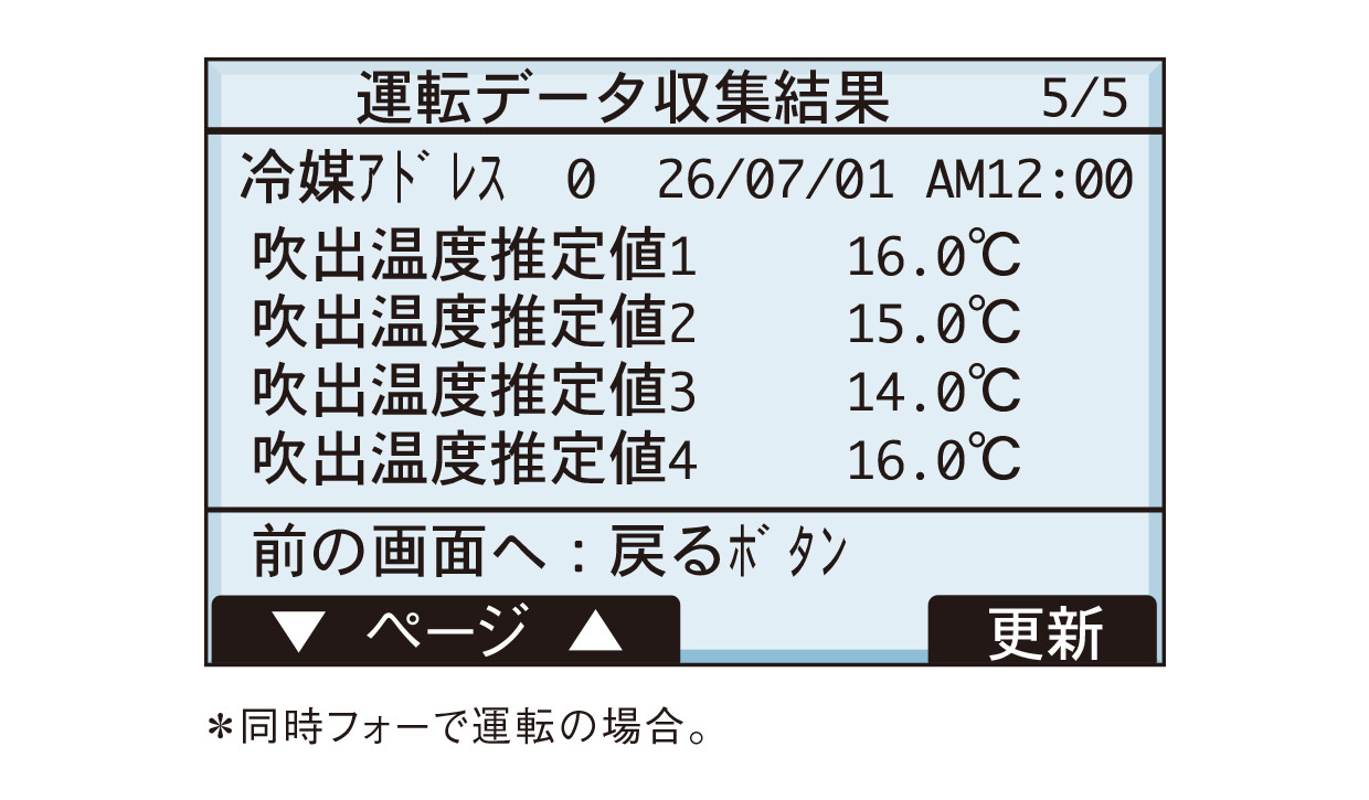 リモコン画面に吹出温度を表示できるため、従来のような計測器の用意や測定の手間が不要。試運転時や保守・メンテナンス時の作業効率を向上します。
