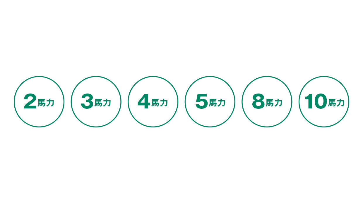 2~10馬力をラインアップ。最適な能力が選べます。2~5馬力にはR32冷媒を採用し、環境にも配慮しています。