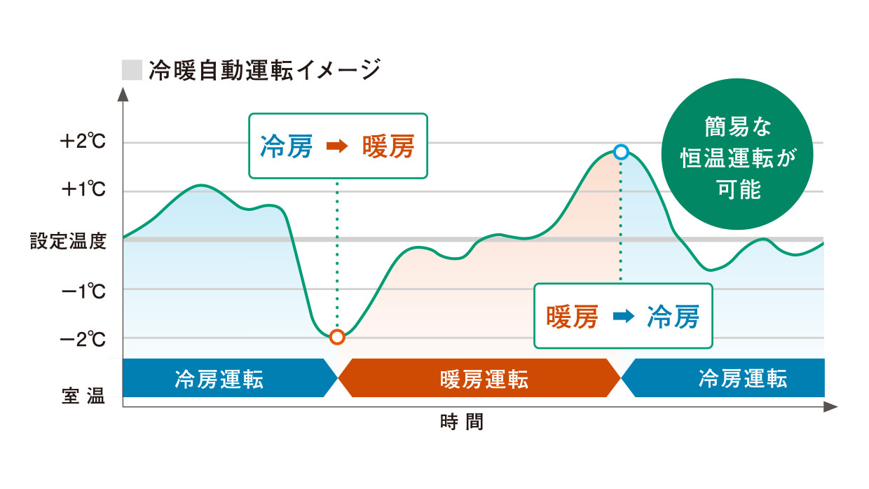 設定温度に合わせ、冷房・暖房運転を自動コントロール