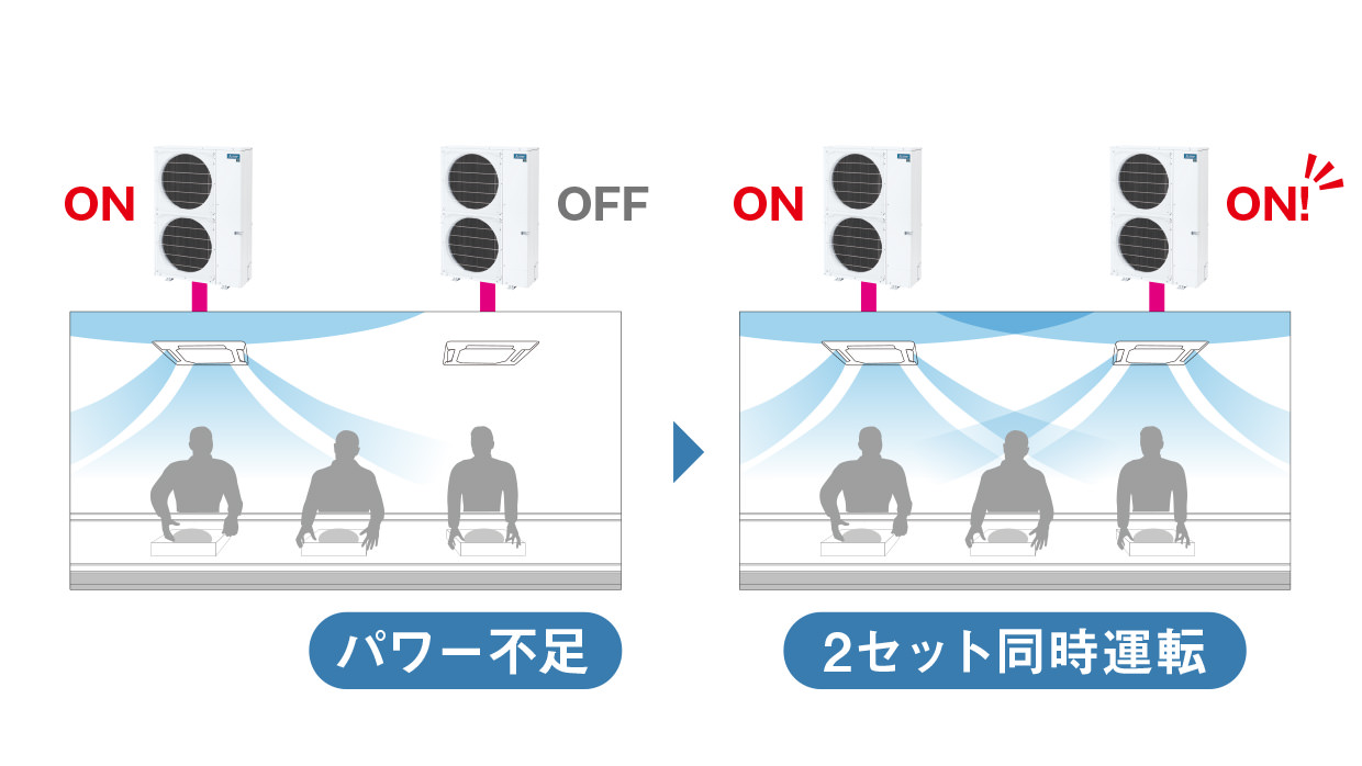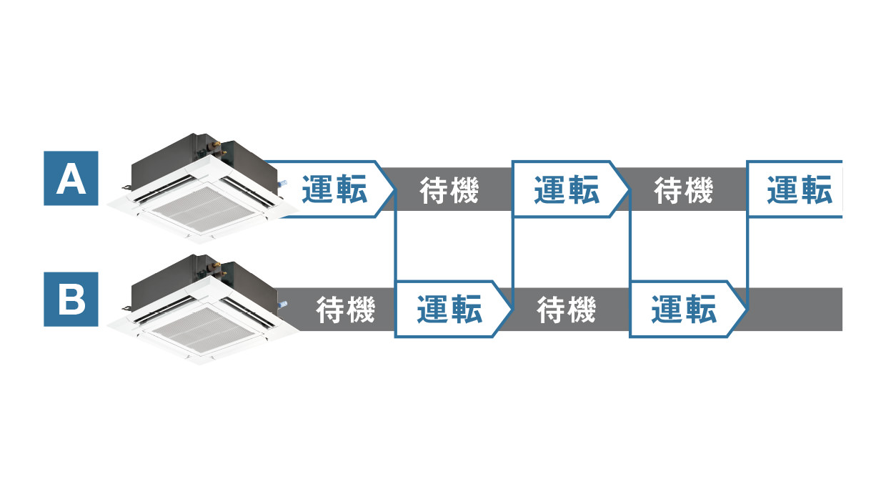 グループ制御で機器の負担を軽減。もしもの故障時にも、しっかり備えます。