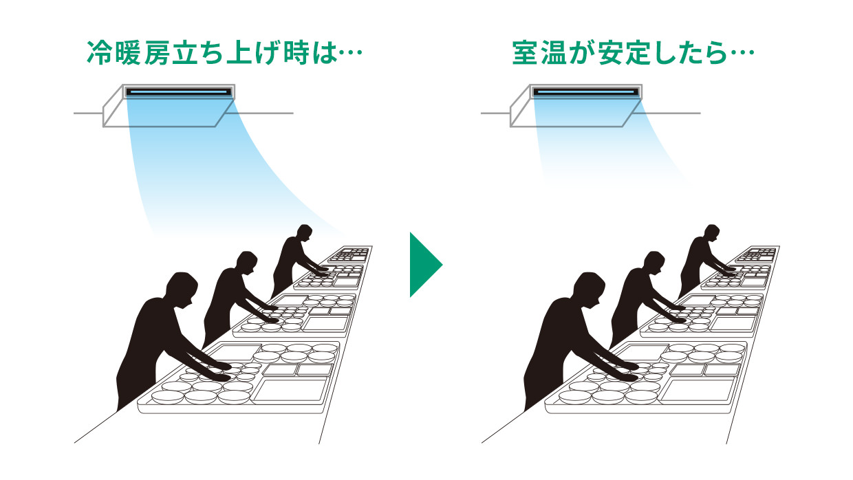 スポットダクトに対応し、空間全体を空調しながら調理する人の近くなどフレキシブルに風を届けます。