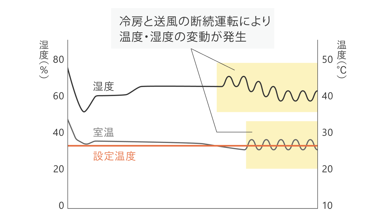 - *再熱除湿方式ではありませんので、室温低下する場合があります。湿度設定はできません。