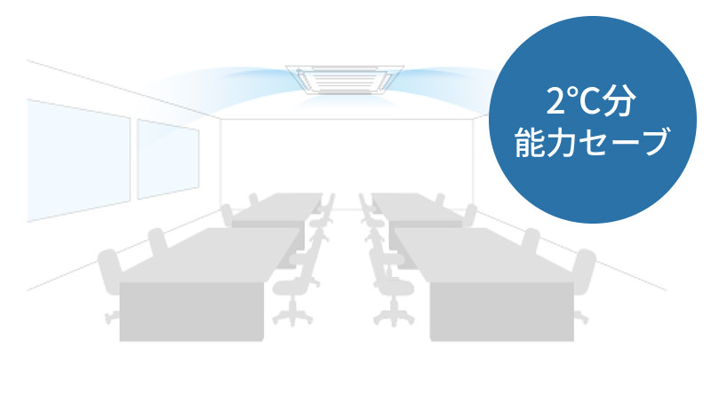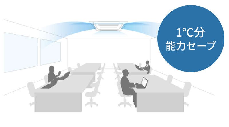 在室率が30%程度の場合、冷暖房ともに1℃分の空調パワーをセーブ。人数に応じた適切な温度制御を行います。