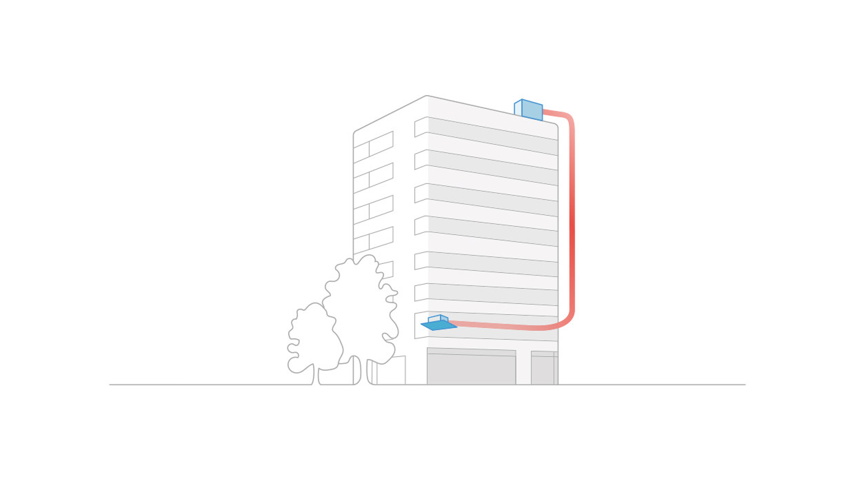 ユニットとダクトを接続し、任意の場所に吸込口・吹出口を設けられるタイプ。