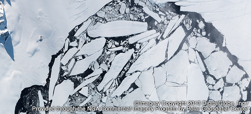 カオス領域では、割れた氷の巨大なブロックが、ある場所では割れ重なり、またある場所ではせめぎ合うようにして存在している。ちょうど、地球の流氷や氷山が割れて、折り重なるように。