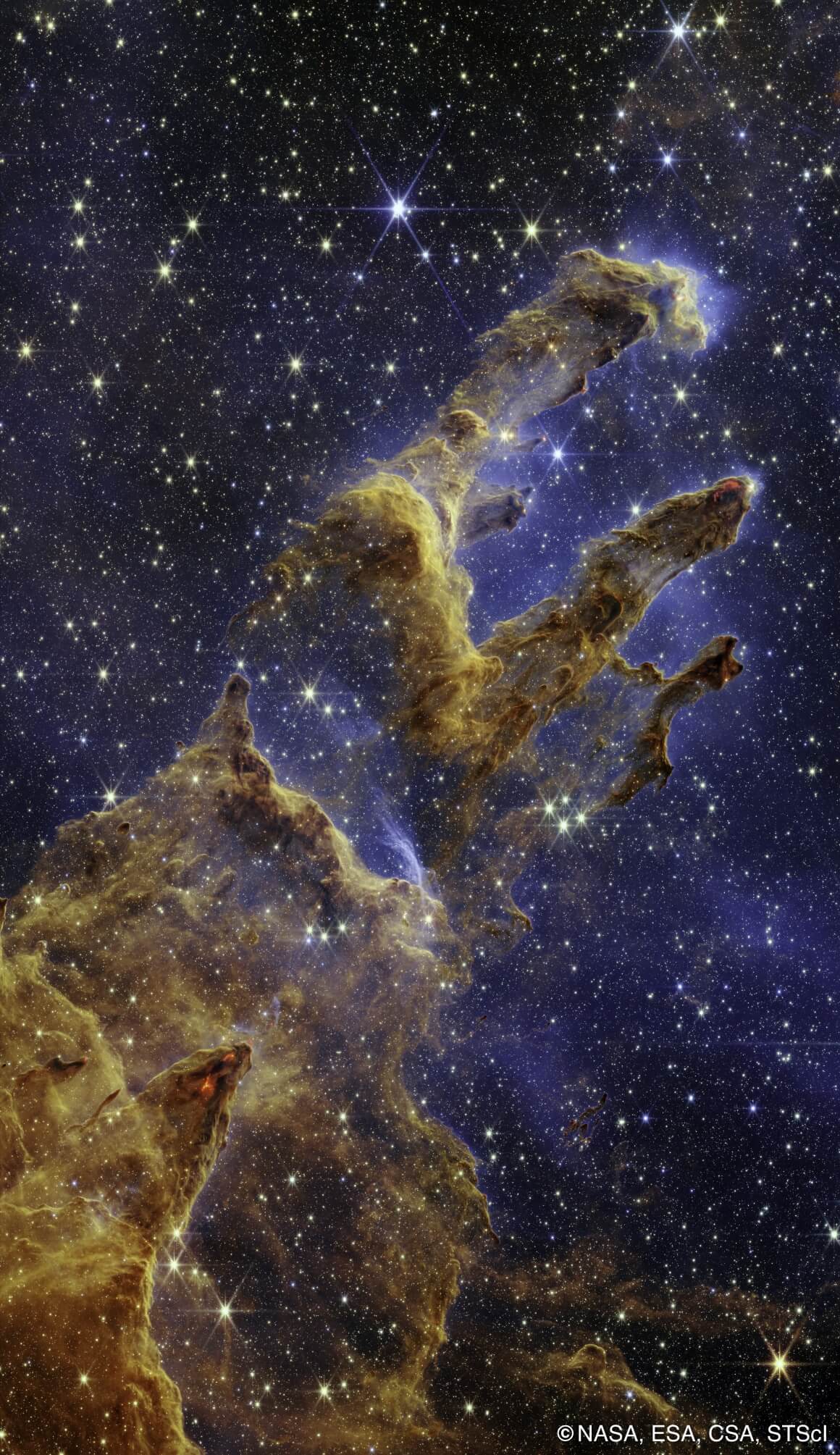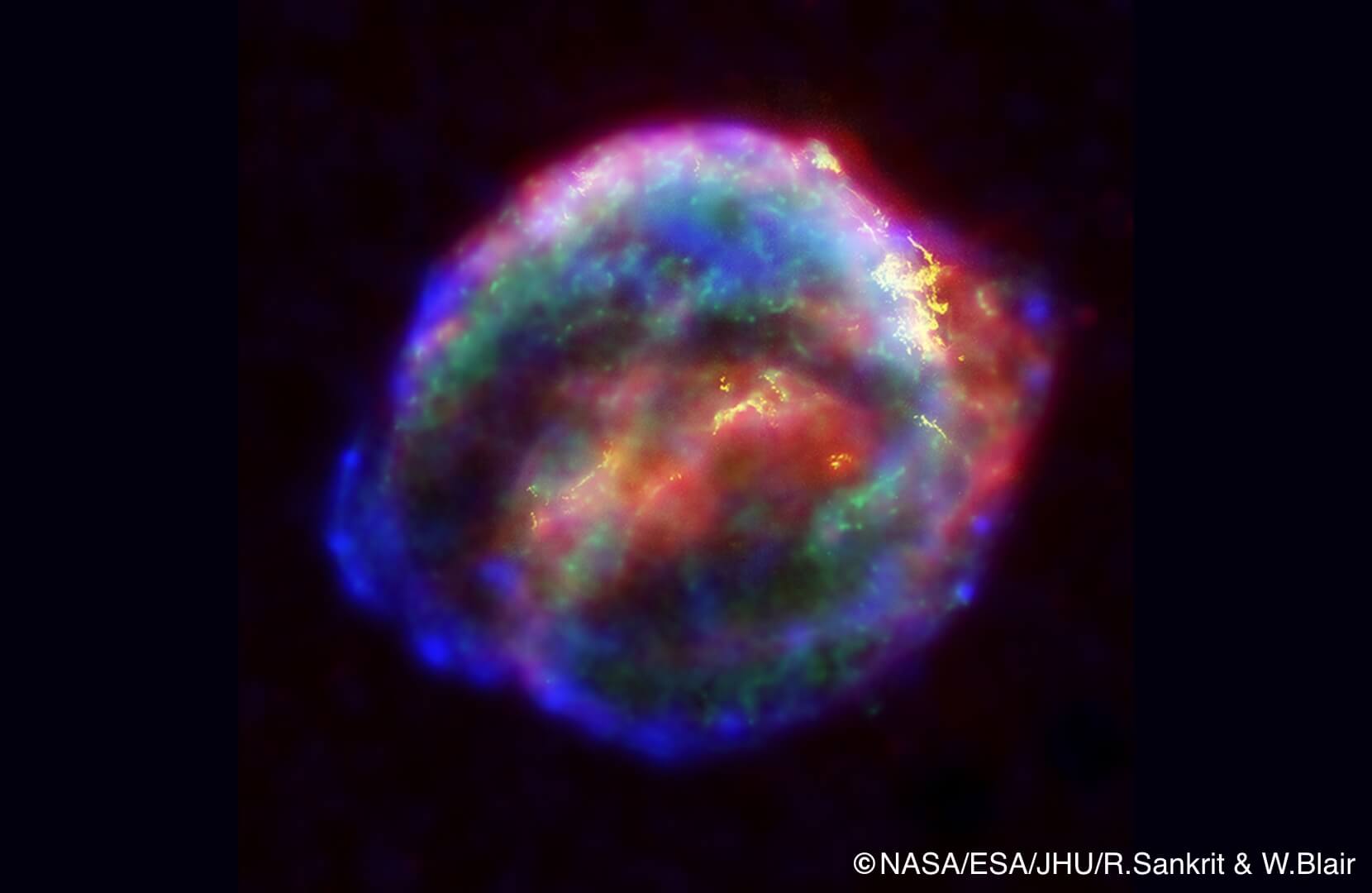 撒き散らかされた物質は、強い光と高速の衝撃波を伴って宇宙空間に力強く広がり、静かにたゆたっていた周囲の極低温のガスや塵の雲を次々に襲う。このガスや塵の雲も、元をただせば、さらに前の世代に撒き散らかされた、星の残骸に他ならない。