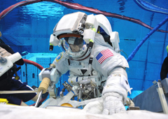 NASAで船外活動訓練を行う大西卓哉宇宙飛行士候補者。3人の宇宙飛行士候補者たちは、基礎訓練が終わる2011年夏頃までNASAに滞在する。(提供:NASA/JAXA)