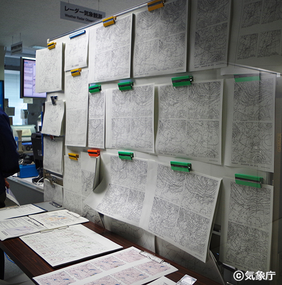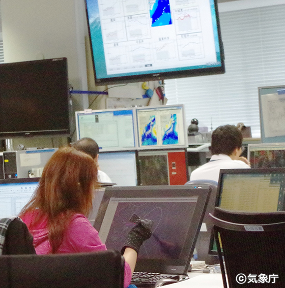 気象庁広報室の牛田信吾さんによると、「天気予報は基本的に都道府県を管轄する地方気象台が出しますが、まず気象庁本庁の『全国予報中枢』の予報官が、たとえば台風が接近していて、今何に気を付けないといけないかなど『全体のシナリオ』を作ります。それをふまえて地方ごとに地形や災害に対する脆弱性を考慮し、予報や注意報などを出していきます」とのこと。