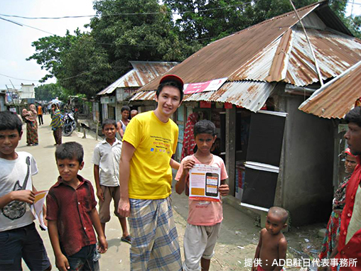 事例として興味深いのが2012年から3年間行った洪水警報システムのミッションだ。バングラデシュ・ベトナム・フィリピンを対象に人工衛星が観測した雨分布データを活用して洪水を予測、川沿いの住民に携帯メールで水位情報を届け、地元防災担当と連携して住民の避難訓練まで行った。ADB貧困削減日本基金の約2.4億円のプロジェクトだ。