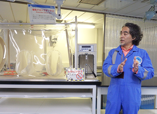 注意しなければならないのは船上の菌で汚染しないこと。海底下には酸素にふれるのを嫌う生物が多いことから、生物試料は速やかに窒素を充填したグローブボックス内で処理を行う。その他、様々な装置を取りそろえ、ごく微量の菌も検出できるような高い分析能を誇る。この分析能力と掘削能力の両方があるからこそ、「ちきゅう」には世界中の科学者が乗船する。海底の現場からあがってきた試料を、鮮度のいいうちに分析にかけ、画期的な科学成果を続々とあげているのだ。