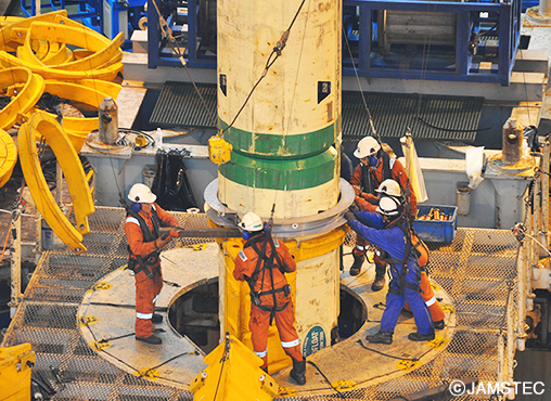 「ちきゅう」はチャンピオンデータの保持者だ。「大水深掘削」では、日本海溝での水深6883.5m+856.5mの世界記録、大深度掘削では南海トラフでの水深1939m+3085.5mの世界記録をもつ。