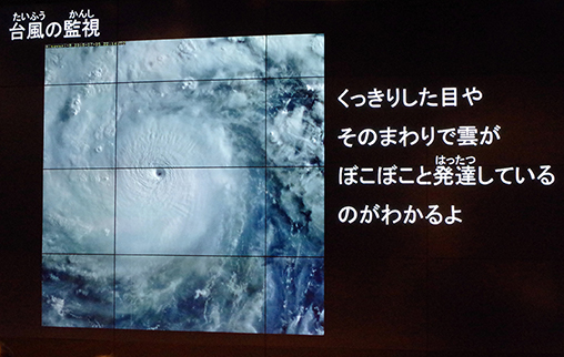 ひまわり8号は、日本から遠く離れた場所で台風が発生する様子を早い段階からとらえ、日本列島に近づく前に、台風の強さやスピードを教えてくれる。「2分半ごとに台風をクローズアップして追いかける機能もあります。台風の中心にある目や、その周りの雲の動きをとらえ、台風がどのくらいの大きさでどんな強さか知ることができます」(安井さん)
