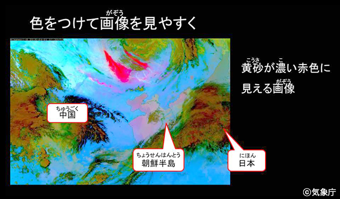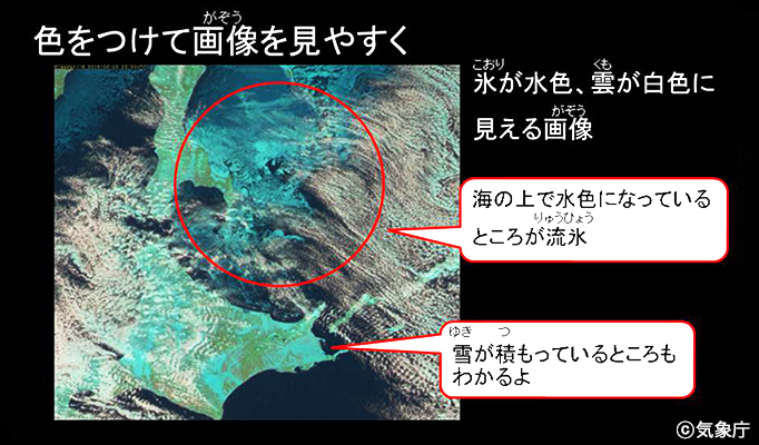 局地的大雨をもたらす積乱雲以外にも中国から飛来する黄砂や、北海道の流氷など画像データから特定の対象を見やすくする研究が進行中であり、初めて見る貴重な映像を参加者たちは食い入るように見つめていた。