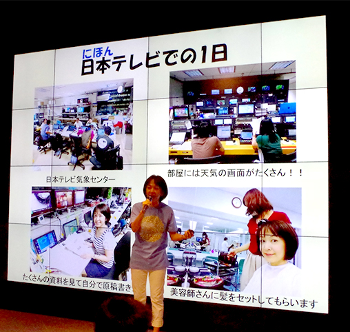 そして「ひまわり8号」などの膨大な気象データを見ながら、実際に私たちにお天気をわかりやすく伝えてくれるのが気象予報士のみなさん。日テレニュース24の気象キャスターで気象予報士の藤森涼子さんが、天気予報の現場話を楽しく話してくれた。