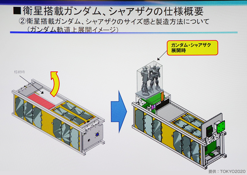 ガンプラは超小型衛星G-SATELLITEに搭載され、2020年3~4月に国際宇宙ステーション(ISS)に届けられ、「きぼう」日本実験棟から放出される予定だ。衛星放出後、ガンプラ2体は衛星内部から宇宙空間へ。大会期間中、地球から送られてきた「〇〇選手、金メダルおめでとう!」などのメッセージを電光掲示板に表示。地球をバックに衛星搭載の7台のカメラで撮影し、地上に送り届けるという。企画にはJAXAと東京大学中須賀・船瀬研究室が協力、衛星開発には、東大とともに福井県のエンジニアも参加している!