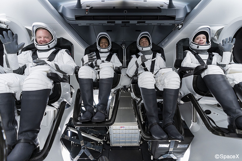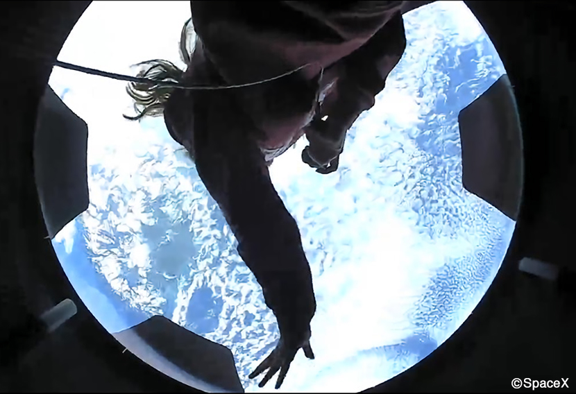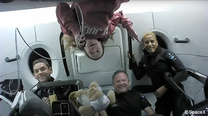 半年前に予告した通り、9月16日午前9時過ぎ(日本時間)、民間人4人だけを乗せたクルードラゴン「レジリエンス号」が打ち上った。3日間にわたって、地球上空585km(ISSの高度より高い!)を飛行した後、19日午前8時過ぎ、フロリダ沖の大西洋に着水。「Inspiration4」と名付けられたミッションは飛行中も、宇宙船トップに新たに取り付けられた展望窓キューポラからの輝く地球の映像をSNSで発信し続け、世界中の人に宇宙や人生に対する新しいインスピレーションを与えた。