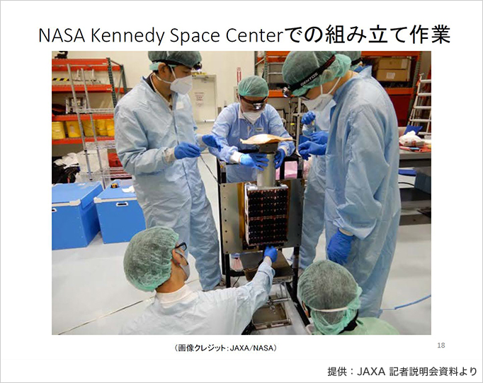 DSPACEでは2016年夏、「オモテナシ」を考案したJAXA橋本樹明教授を取材した。2015年8月にNASAから「SLSに超小型衛星を搭載するので、興味があったら応募して」というレターが届く。締め切りまでたった2か月。しかも条件はめちゃくちゃ厳しかった。サイズは「11cm×24cm×37cm」というブーツ箱サイズで重さは14kg以内。それでいて、「有人探査を推進する技術、あるいは科学ミッションを含む」という目的をもつことが求められた。