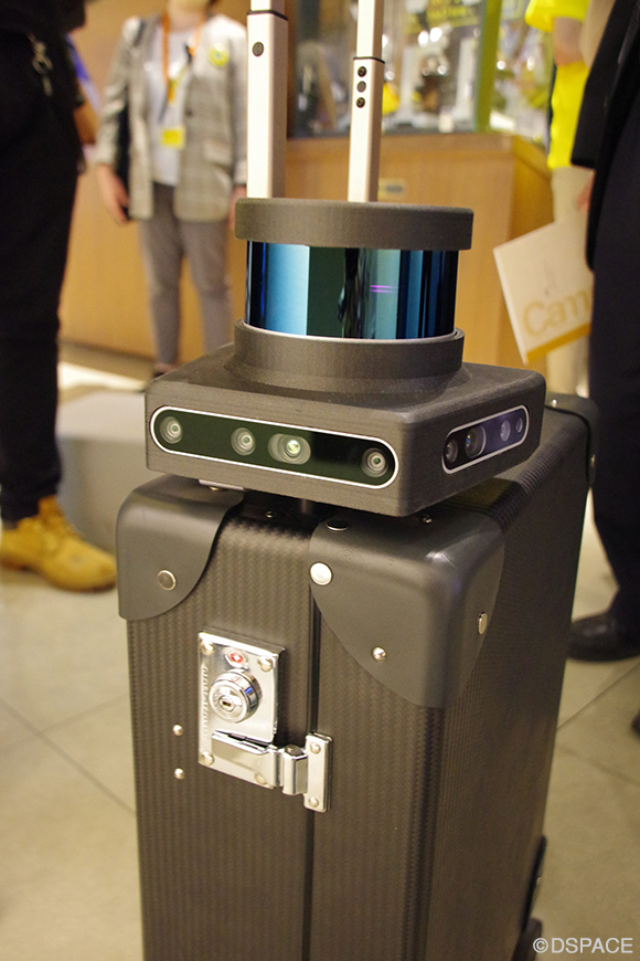 AIスーツケースってどんなものだろうか。私も体験させてもらった。カメラとセンサーが載っているが、2~3泊用のキャリーケースと同じぐらいで見た目はスマート。目をつぶってスーツケースのレバーを握ると、意外に力強く目的地に導いてくれる。歩いている途中、止まることがある。誰かが進行方向に現れたようだ。その人が通り過ぎると、ふたたび動き出す。最短経路で目的地に導いてくれる。頼れる相棒という感じだ。視覚障碍者だけでなく、足元がおぼつかなかったり、認知症が進み道を歩いている間に目的地やルートを忘れてしまったりする私の母のような高齢者も活用できれば、と実感した。