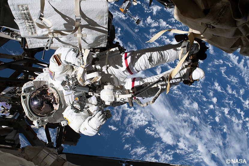そして宇宙服装着の仕方。船外活動は実際に宇宙空間に出る宇宙飛行士本人だけでなく、チームメンバーにとっても大仕事だ。船外活動をする宇宙飛行士が宇宙服を着るのを別の飛行士が助け、装着後もチェックリストに基づいて空気漏れがないかなど細やかにサポートしている様子をNASAテレビの中継で見ることができる。NASA宇宙服はヘルメット、上半身、下半身などのパーツに分かれていて一人で着るのは難しい。しかし、これでは機動性に欠ける。