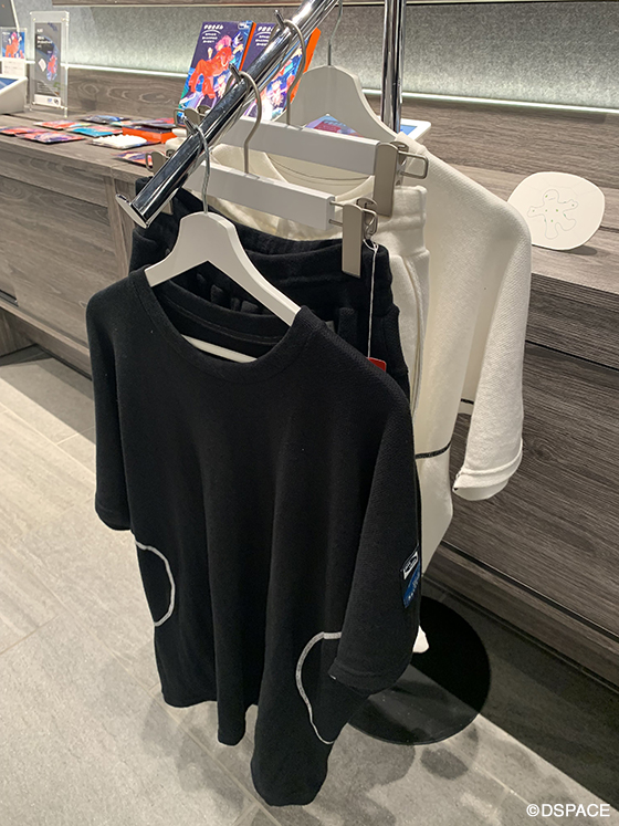 汗について「日本人の20人に一人は多汗症だと言われている」(ディプロモード西田誠氏)という。汗の不快要素はべたつき、汗じみ、匂い。このTシャツは汗をかいても肌側から表側に瞬時に水分を移動、肌側は常にさらさらな状態になっているという。匂いについてはJAXAと東レがISS宇宙飛行士船内服用に開発した消臭機能が、汗染みについては光を乱反射させる繊維を使うことで目立たないそう(店舗で実際に霧吹きで水をかけて実験できる)。