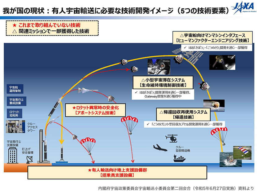 ところが今年6月に内閣府で閣議決定された宇宙基本計画で「有人輸送などに必要となる要素技術の開発を進める」と明記されたんです。