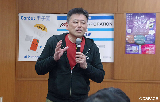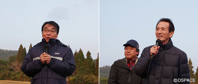 2月11日(日)早朝、JAXA内之浦宇宙空間観測所に隣接する会場に、國中均宇宙科学研究所長が訪れた。「宇宙研のミッションは挑戦するからこそ、うまくいかないこともある。皆さんも創意工夫を発揮して挑戦してもらいたい。ぜひ頑張ってください!」とエールを送る。続けて会場整備や食事提供などで学生たちをもてなした鹿児島県肝付町の永野和行町長が激励。「今日は54年前の1970年、日本初の人工衛星『おおすみ』が打ちあがった日。その日に皆さんは缶サットで競いあう。ご健闘を祈ります」