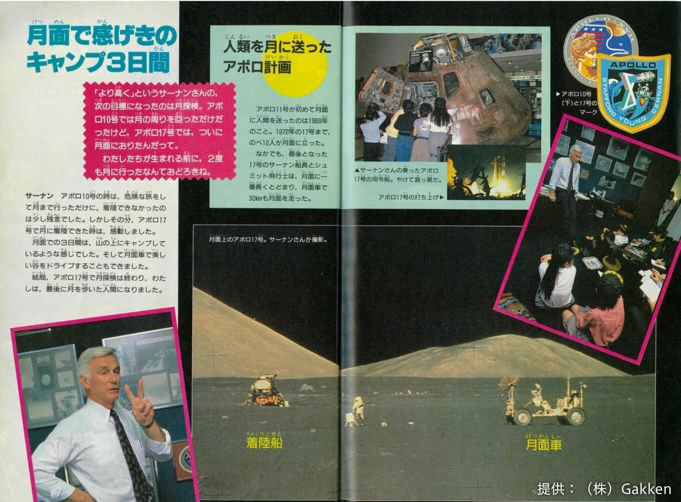 そういえば、と記憶をたどる。1988年3月に行われた日本宇宙少年団(YAC)×学研合同のNASAツアーだった。6人の小学生たちと、NASAケネディ宇宙センターやジョンソン宇宙センターなど米国各地のセンターや、ワシントンD.C.の航空宇宙博物館などを回る宇宙てんこもりのツアー。そのハイライトが、アポロ17号の船長を務め月面を歩いたユージン・サーナン飛行士との対面だったのだ。(私は当時、YAC職員として同行し、取材交渉や通訳などを担当した)