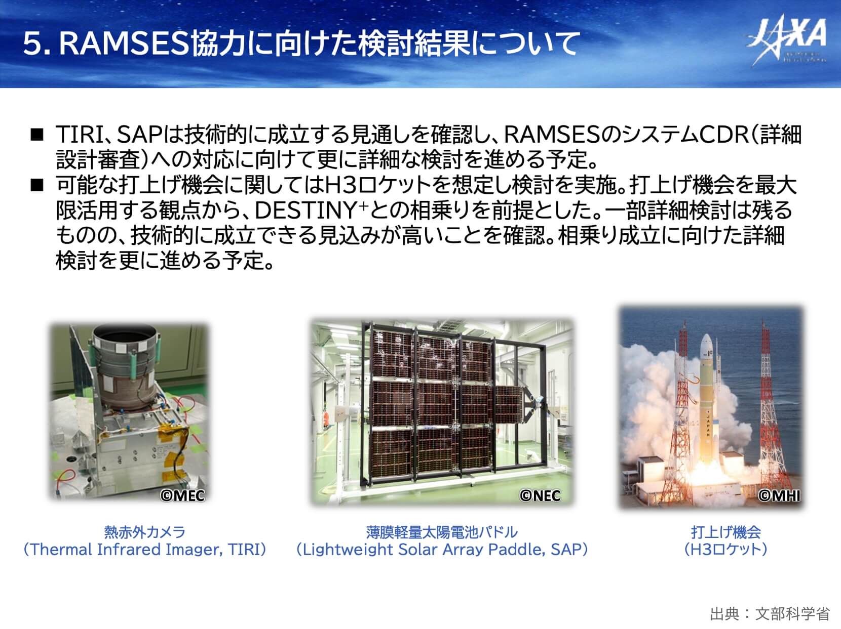 日本がRAMSESに参加を検討しているのは、主に3つ。まずはRAMSES探査機の打ち上げをH3ロケットで行うこと。次に熱赤外カメラの搭載、そして薄膜太陽電池パネルの提供だ。
