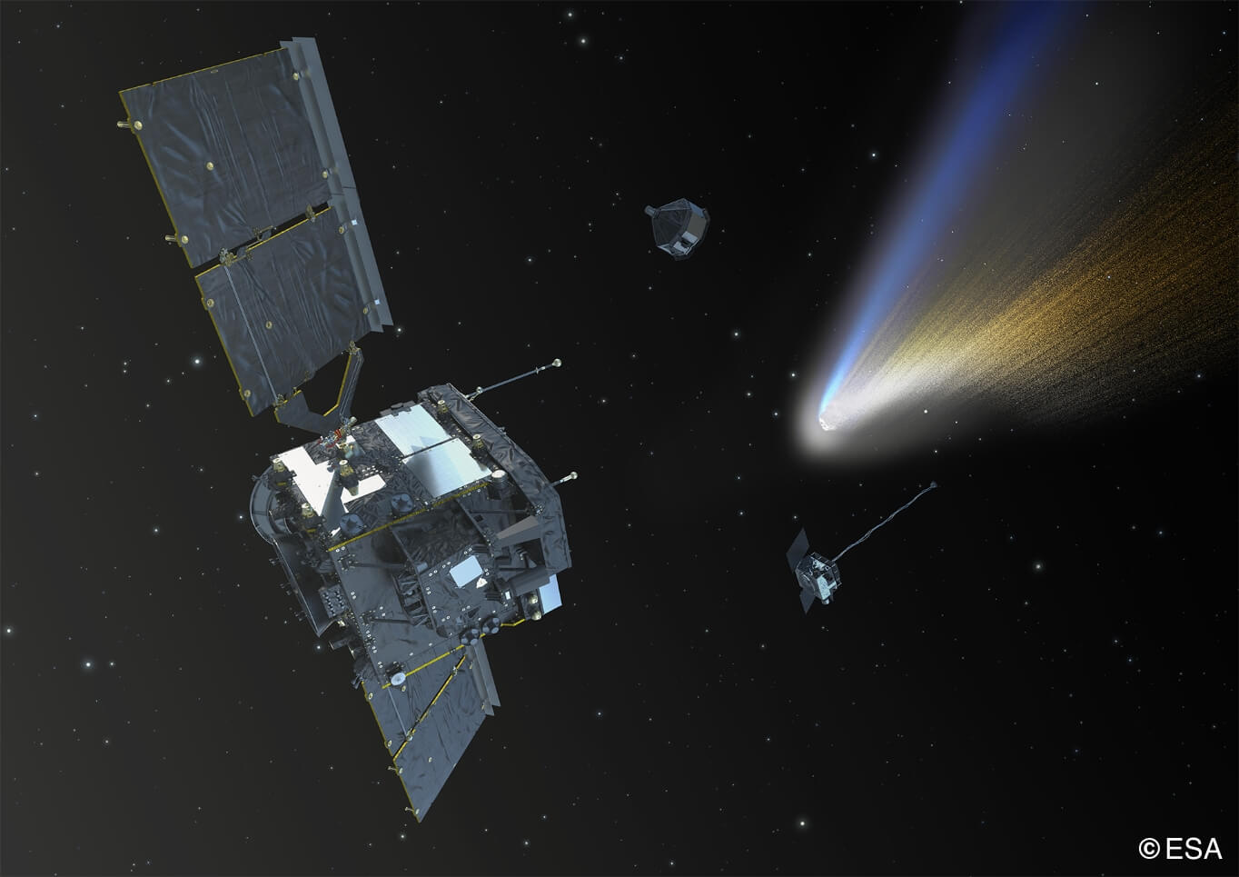 太陽ー地球系のラグランジュ点(L2点)に探査機を待機させて、未知の天体を最大3~4年待って、もし飛来した場合は親機と2機の超小型探査機(子機)で天体の周りを飛行しながら多点観測します。JAXAは3機の探査機のうちの子機1機を担当し、可視カメラ、水素コロナ撮像器などで彗星の観測を行います。