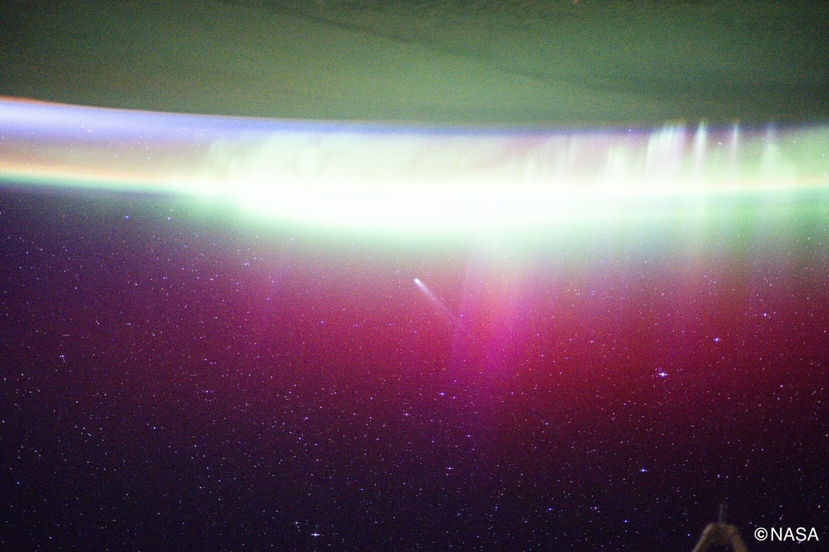 上の画像は、ISS(国際宇宙ステーション)から10月25日に撮影されたオーロラとレモン彗星だ。地上から見上げるオーロラや彗星を、宇宙からは見下ろすことになる。こんな絶景を、ぜひ生きているうちに体験してみたいものだ。そう、宇宙旅行で。